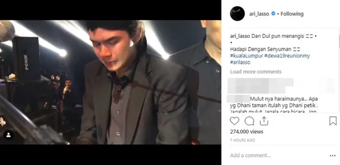 Di sisi lain, para eks DEWA 19 baru saja menggelar konser di Stadium Malawati Shah Alam, Malaysia. Dalam event ini, Dul sempat hadir menggantikan ayahnya. Selain itu, ia sempat menuliskan pesan haru untuk ayah dan bundanya lewat Instagram.